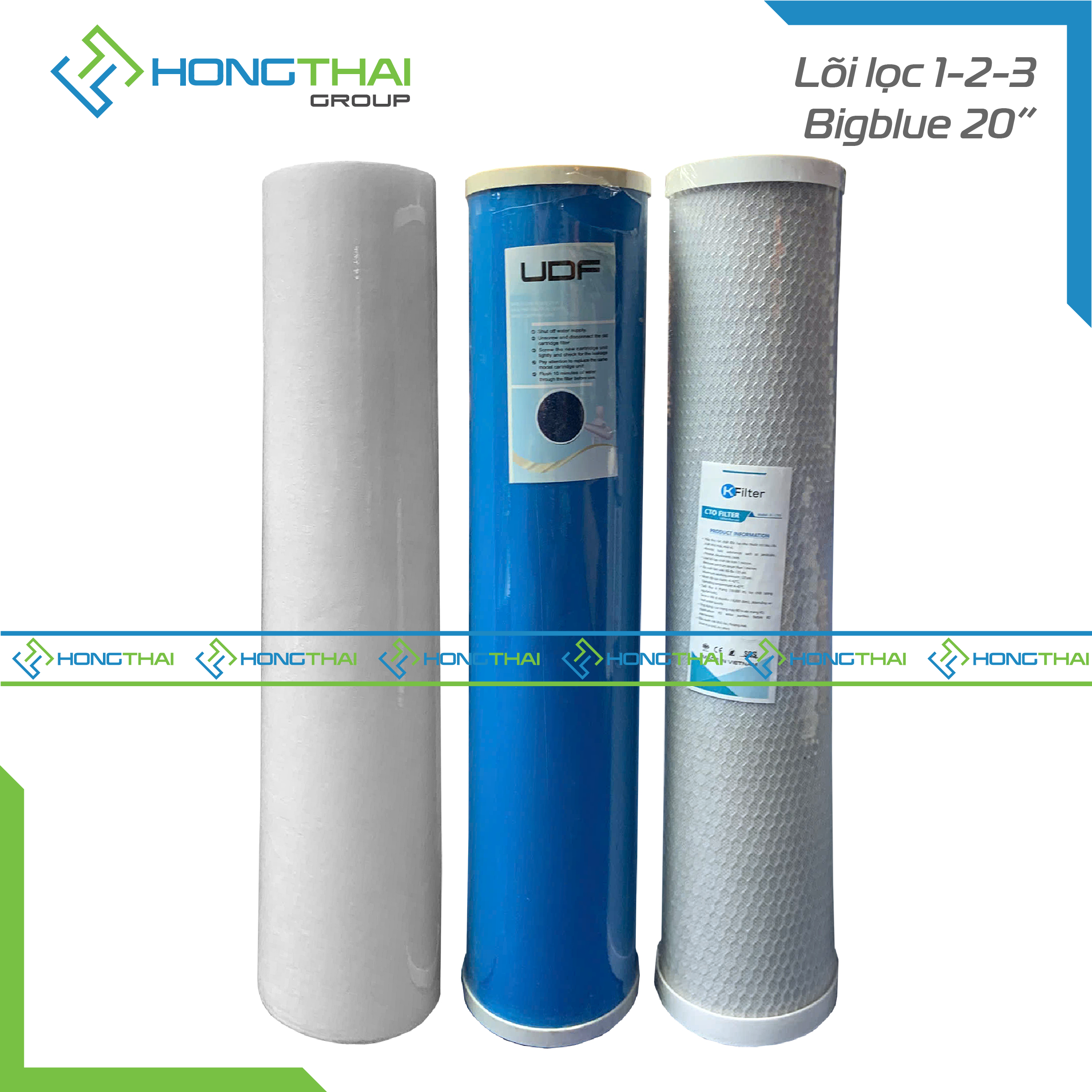 Bộ lõi 1,2,3 20 inch dùng cho bộ lọc thô 20" và các dòng máy RO công suất lớn (máy lọc nước RO 30 L/H, 50 L/H, 100 L/H) dùng 3 lõi lọc thô trong 3 cốc lọc 20" trên thị trường.