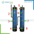 Nước cấp đầu nguồn được bơm lên bồn chứa trên cao. Sau đó, nước trong bồn chứa này sẽ chảy qua các cột lọc nước PVC. Tong các cột lọc này có chứa các loại vật liệu lọc như cát thạch anh, sỏi thạch anh, Cát Mangan khử phèn, than hoạt tính,…Sau khi nước cấp đi qua các cột lọc, các lớp vật liệu lọc sẽ có chức năng lọc và loại bỏ các cặn bẩn có trong nước và cho ra nguồn nước để sử dụng.