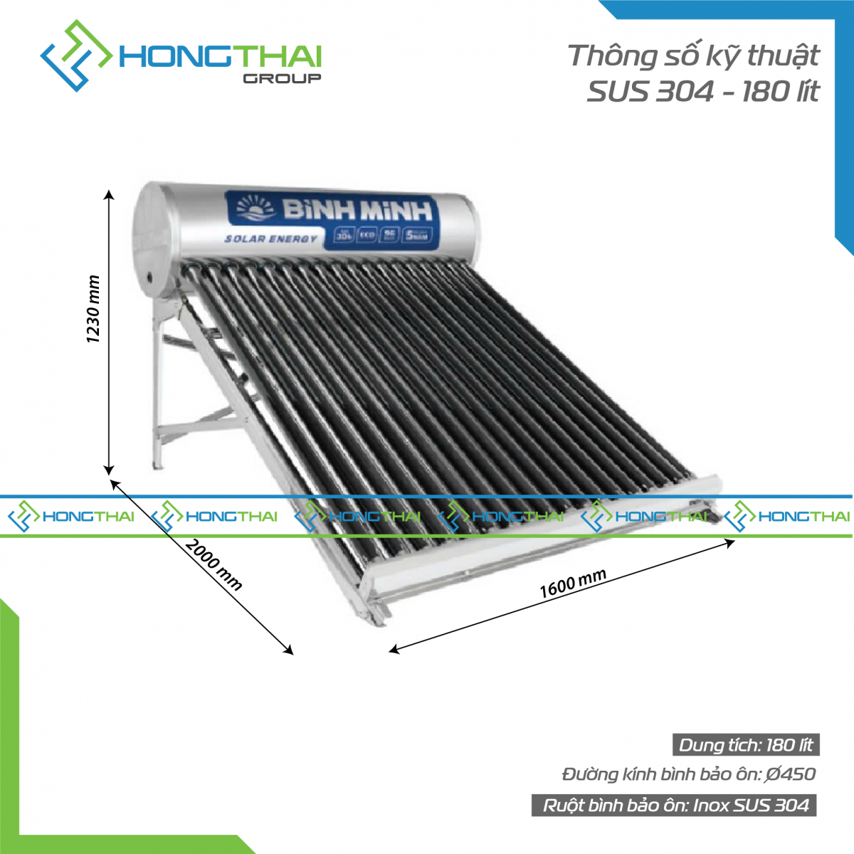 Kích thước ống thu nhiệt: ∅58 x 1.800.mm