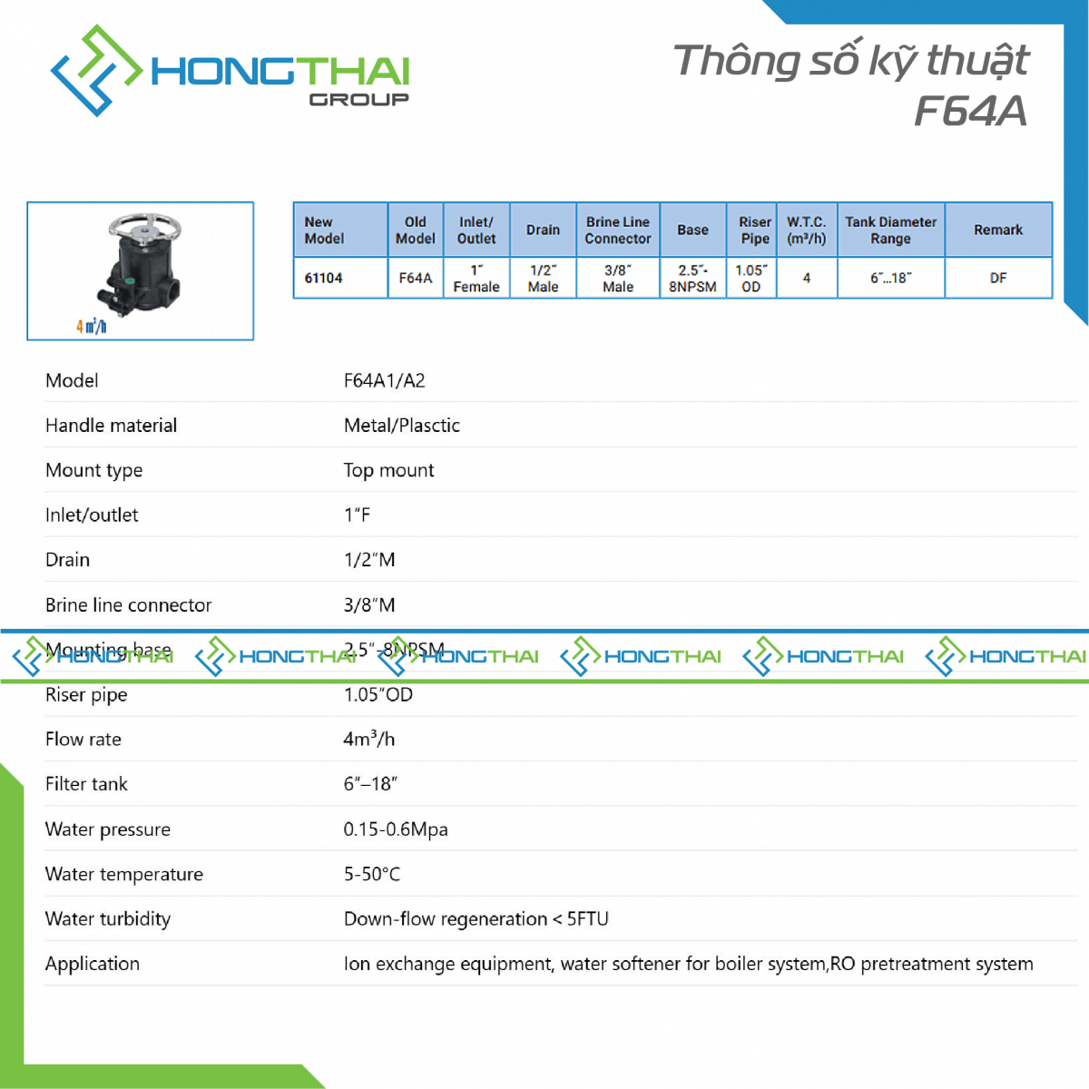 Van làm mềm điều khiển tay F64A - 4m3/h