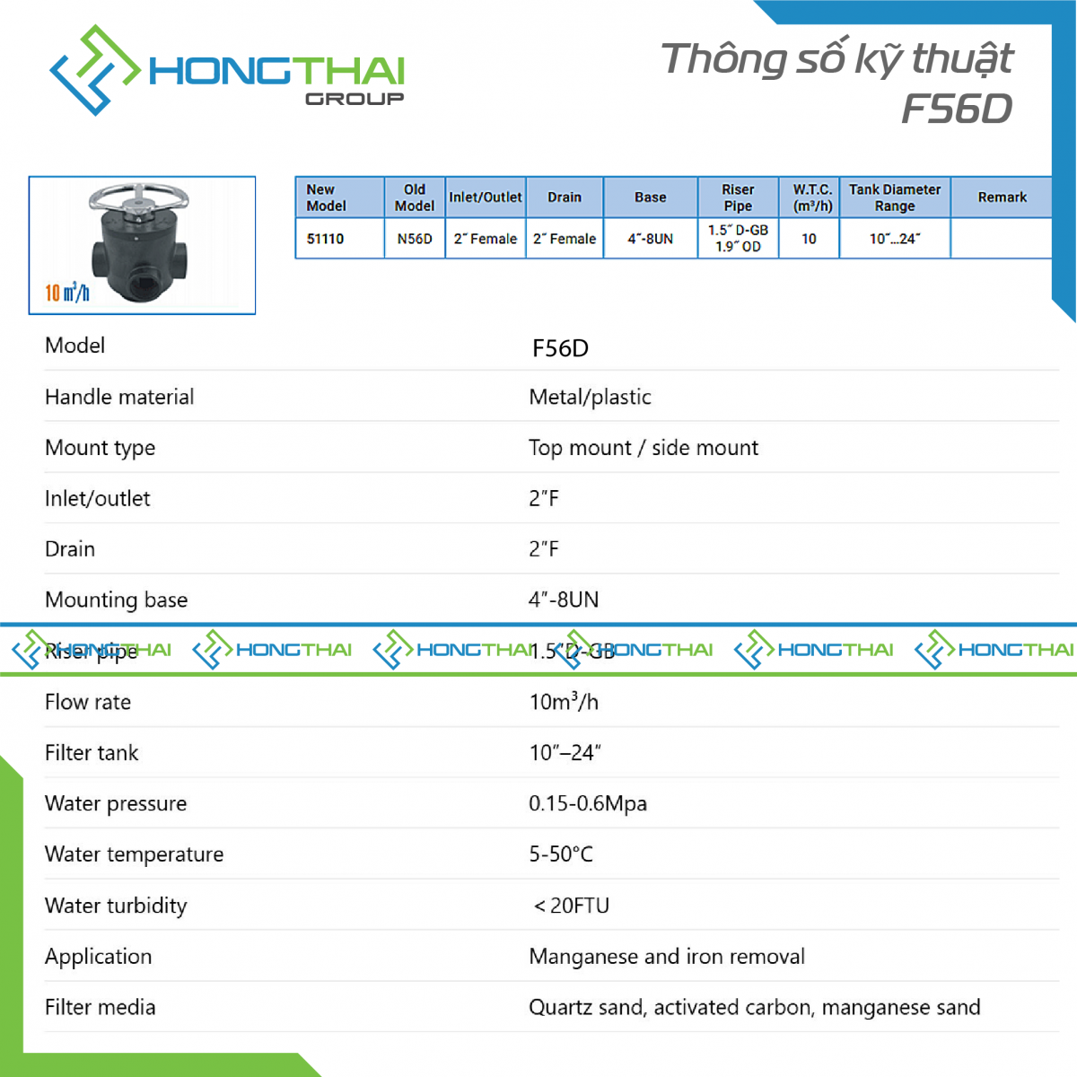 Van lọc điều khiển tay F56D - 10m3/h
