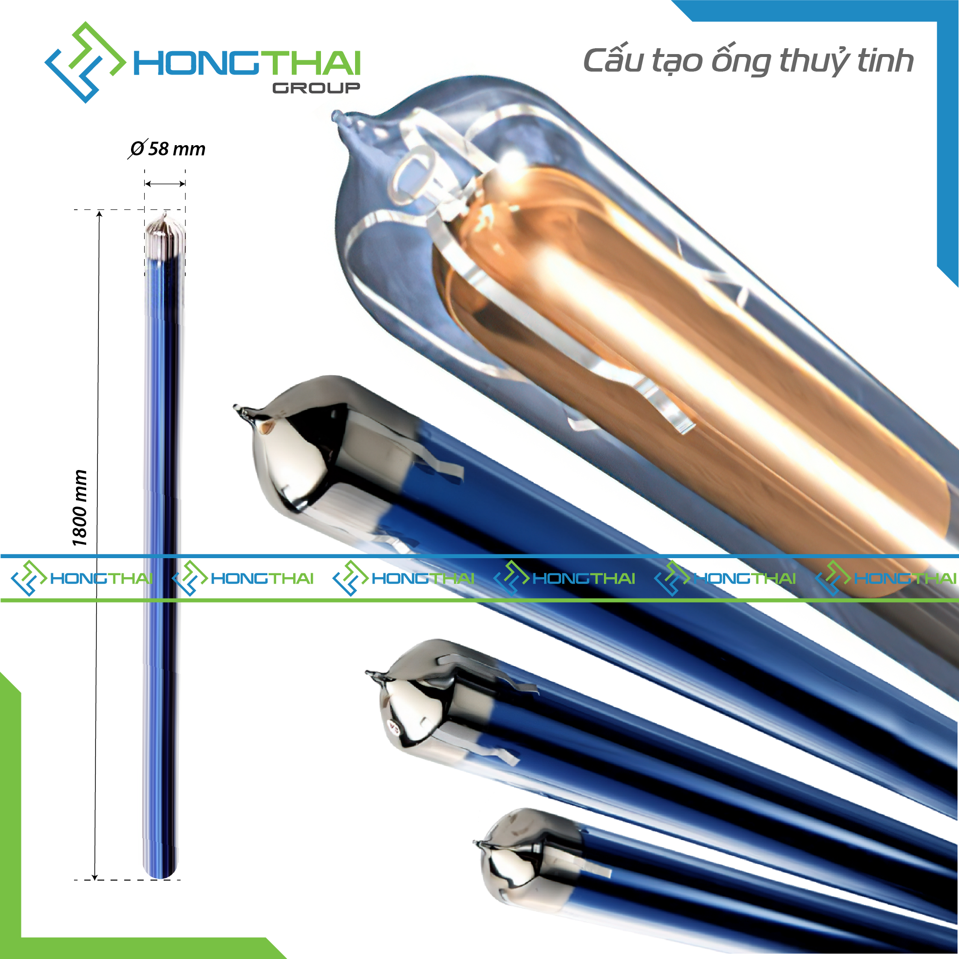 Kích thước ống thu nhiệt: ∅58 x 1.800.mm