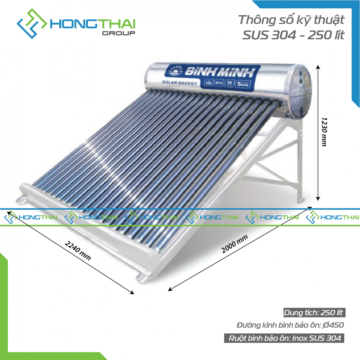 Máy nước nóng năng lượng mặt trời 250 lít - Bình Minh